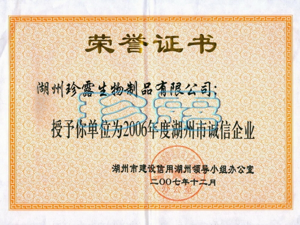 2006年湖州市誠信企業(yè)