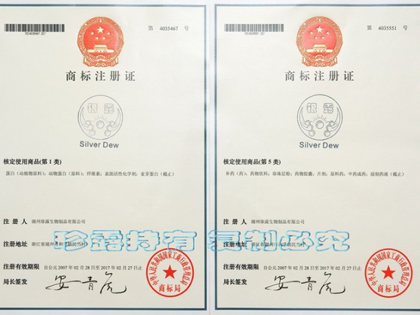 “銀露”商標(biāo)注冊證-第1、5類